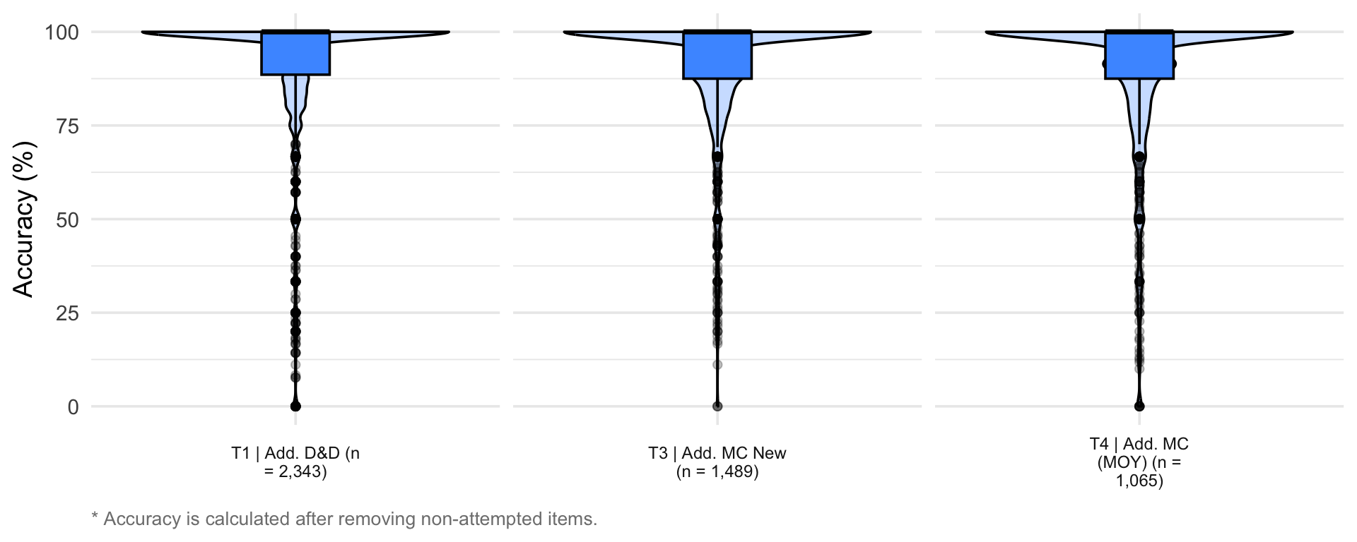 3. Accuracy distribution shows strong ceiling effect across iterations