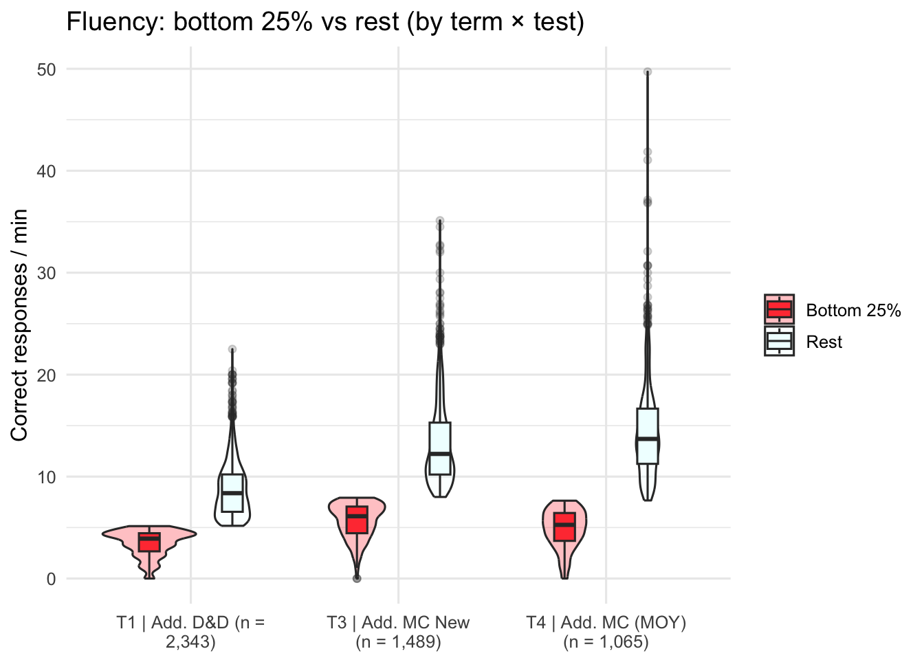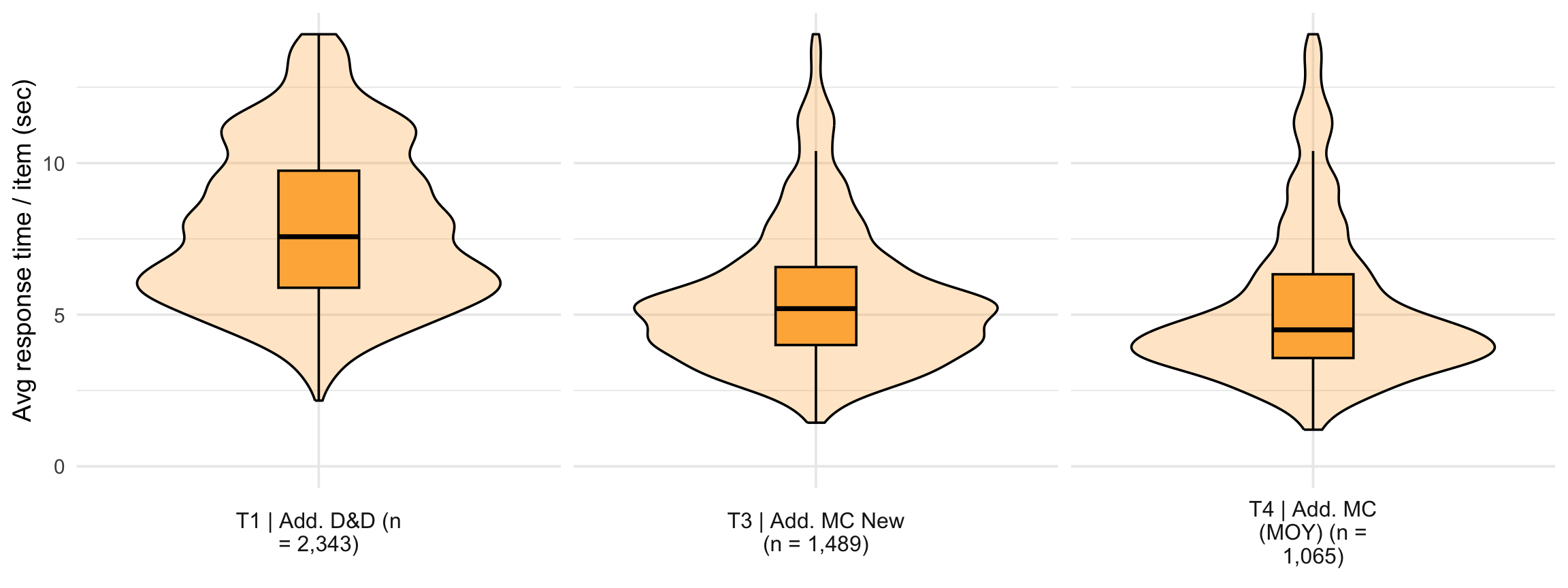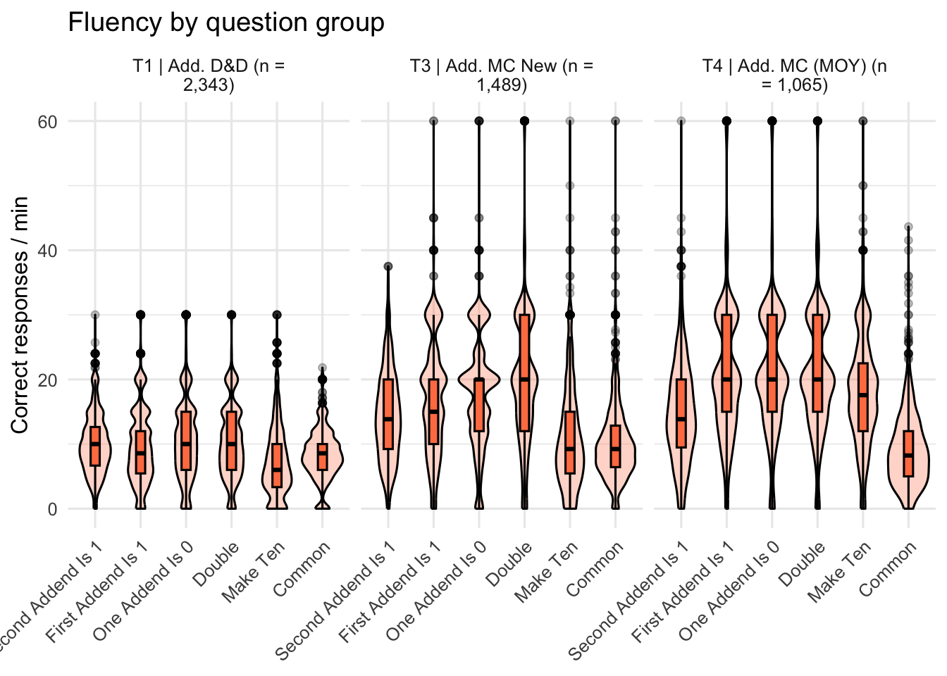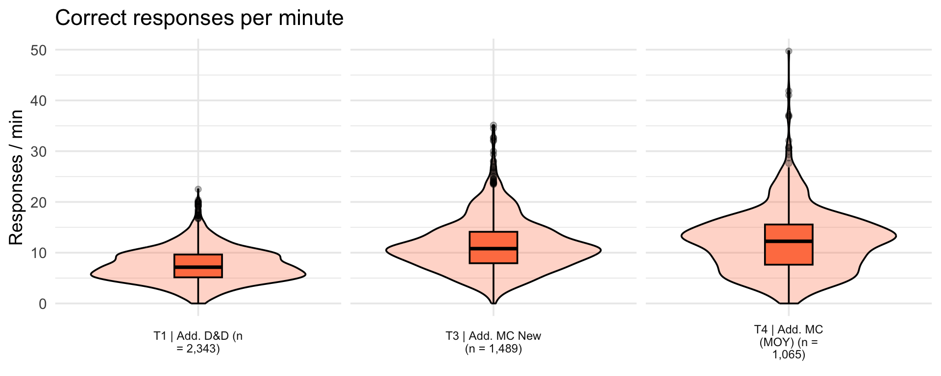 In Term 1 (BOY), students answered by dragging and dropping the correct number (0–13) into the answer box. Because response times were slow at BOY, the task was changed in Term 3 (MOY) and Term 4 (EOY) to a multiple-choice format: students selected the correct answer from four options, with distractors generated from the most common BOY incorrect responses. As a result, the separate “speed test” used to familiarise students with the response format was no longer required at MOY/EOY.