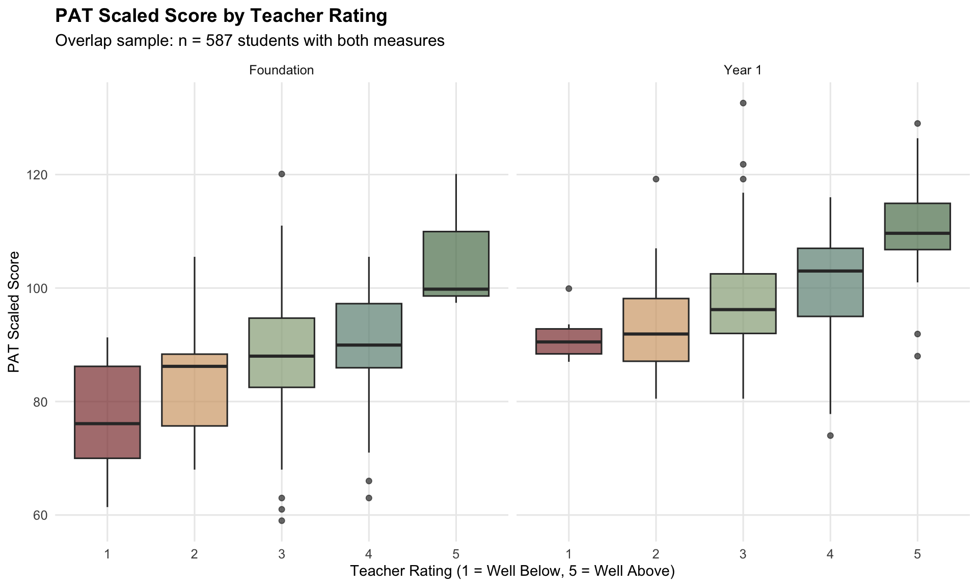 Teacher Ratings Among Low PAT Percentiles (Foundation)