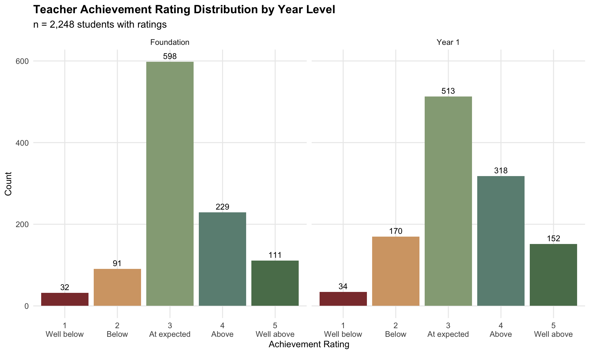 Teacher achievement ratings: 5-point ordinal scale (1=Well below expected, 5=Well above expected).