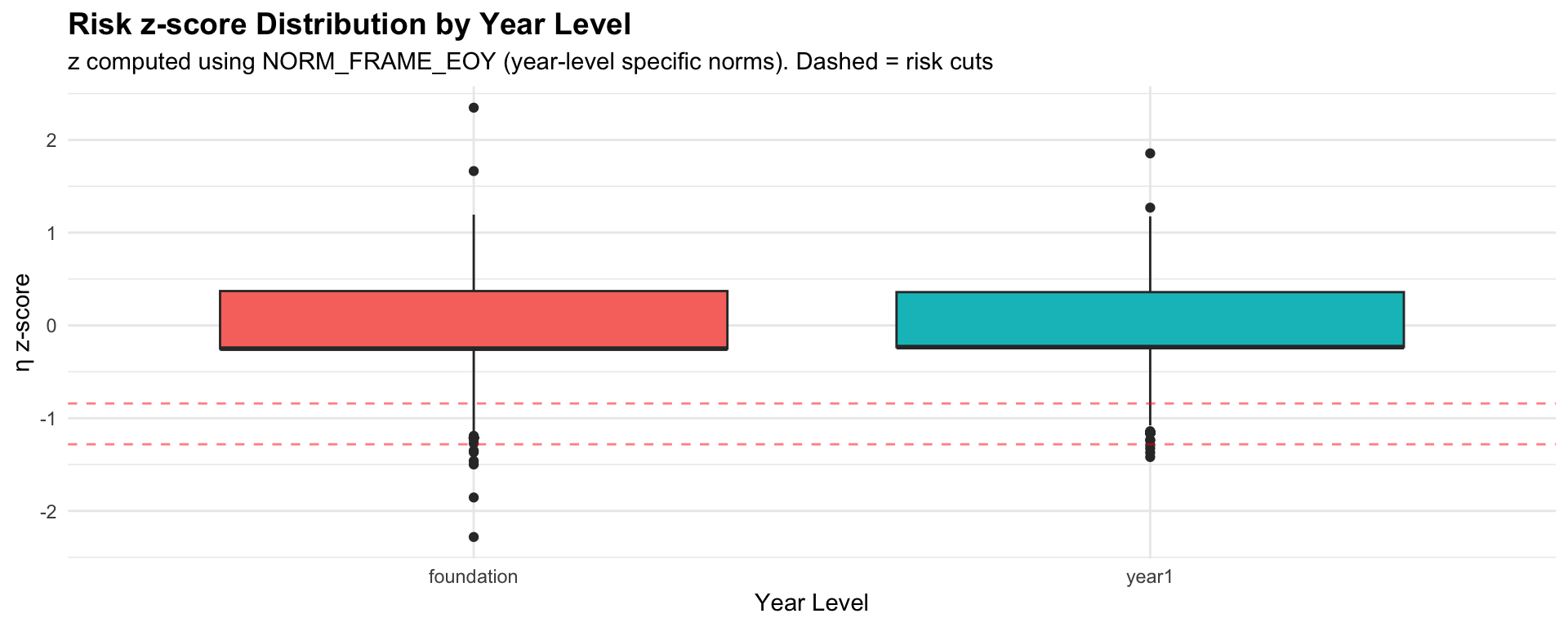 Using NORM_FRAME_EOY: Foundation (μ=92.4, σ=10.1), Year 1 (μ=99.5, σ=11.4)