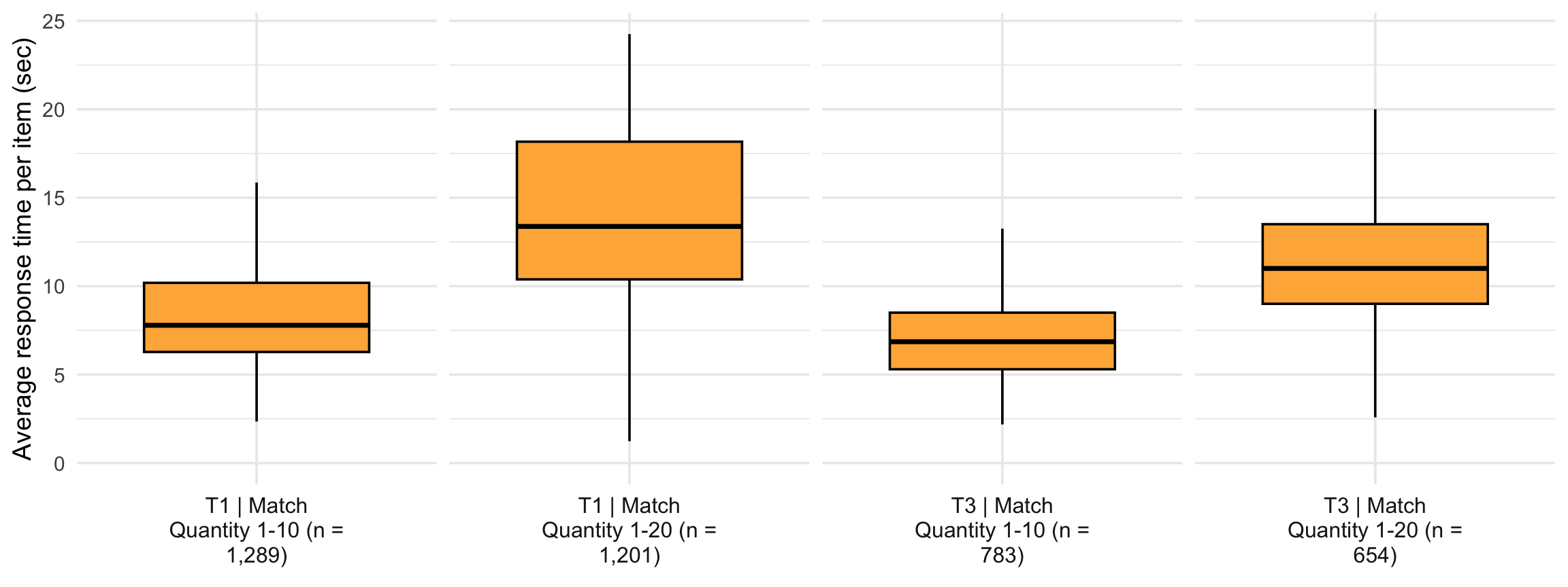 The Match Quantity probe is a timed screening of studentsβ ability to match quantity representations to numbers.